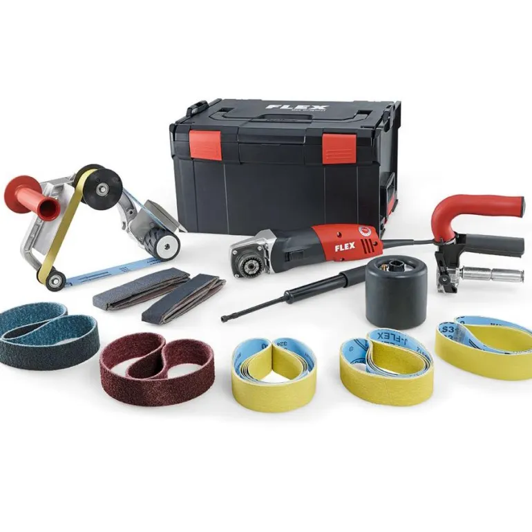 FLEX BSE14-3 INOX Set on satinointikone ja 1400 W nauhahiomakone, nauhan nopeus 3,5-10 m/s. Sopii eri materiaalien työstöön, satinointiin, teksturointiin, kiillotukseen, harjaukseen, tasoitukseen, jäänpoistoon ja teräs- ja ruostumattomien teräspintojen jäysteenpoistoon.