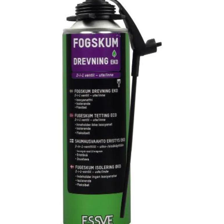 ESSVE Eko -tilkintäsaumavaahto on valkoinen isosyanaatiton saumausvaahto sisä- ja ulkokäyttöön. Vaahto toimii erinomaisesti ääntä eristävänä akustisena tiivisteenä, ja lisäksi sillä on erittäin hyvä lämmöneristyskyky. Kiinnittyy useimpiin materiaaleihin