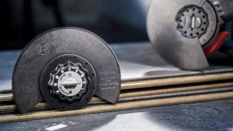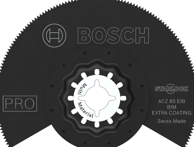 Bosch Professional PRO ACZ 85 EIB -segmenttiterä on loistava monipuolinen terä kaikenlaisiin sisätilojen rakennus- ja saneeraustöihin, ja se sillä on mukava tehdä leveitä ja suoria leikkauksia kaikenlaisiin hankaaviin puutuotteisiin sekä kipsi- ja kuitulevyihin sekä kovettumattomiin metalleihin. Soveltuu materiaaleille ei-rautametallit, vinyyli, PVC, muovi ja muovipinnoitetut levyt. PRO ACZ 85 BB EIB Segment Blade -terän bimetallirakenne varmistaa sen lujuuden ja kestävyyden. Hampaiden päällystys lisää terän kestävyyttä. Terässä on pieni hammasgeometria, mikä mahdollistaa karkaisemattomien metallien ongelmattoman leikkuun. Starlock-kiinnike optimaaliseen voimansiirtoon ja helppoon terän vaihtoon kolmessa sekunnissa.