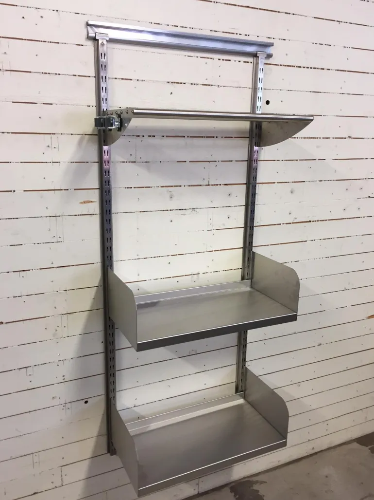 Hyllteknik 60 RFR on ruostumattomasta teräksestä valmistettu seinähylly esim. siivoustarvikkeille.