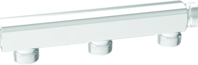Seinäjakaja 3 putkelle, ilman sulkua, korvaa jakajakaapin ja mahtuu komuutin taakse. Jakaja minimoi vesivahingon riskin, koska kaikki liitokset ovat seinän ulkopuolella.