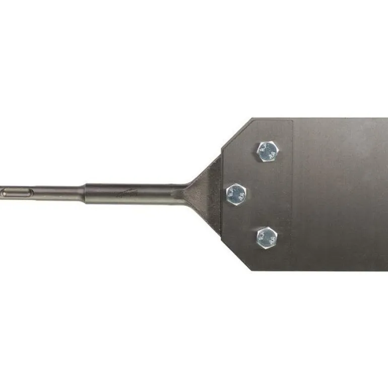 Milwaukee 4932352919 on 250x100x1 mm:n kokoinen seinäkaavin. SDS-Plus-kiinnitys. Kaavin tarrojen, maalin ja pehmeän laastin irrottamiseen.