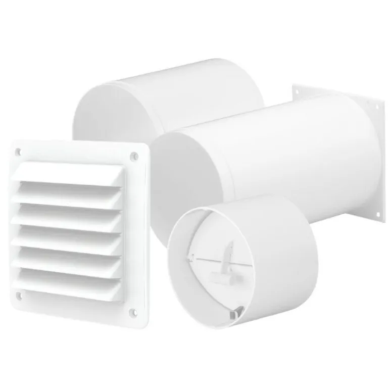 Klimatfabrikenin täydellinen seinäläpivientisarja ulkoseinälle. Liitetään puhaltimiin Ø98-100 mm muhvilla. Sisältää seinäputken Ø100/104 mm (moduulirakenne), ulkosäleikön #150 ja takavedonestimen.