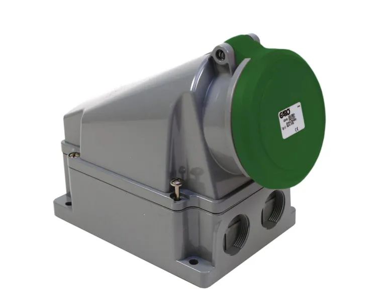 Seinään asennettava, kaapeliliitännöillä päältä ja pohjasta, kääntyvällä alustalla. Yhdistettävä johdinalue 6–16 mm² ja kiinteälle kaapelille 6–25 mm².