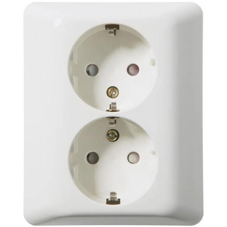Kaksiosainen pistorasia ”RS–pikaliitännällä” uppoasennukseen, mitat 104 x 84 x 51 mm ja nimellisjännite 250 V. Pistorasia on varustettu sekä ruuveilla että pikaliittimellä ja mallissa on kaksinkertaiset liitännät vaihetta kohti. Turvapistorasia, jonka kiinnitysruuvien väli on 60 mm. Kiiltävän valkoisella pinnalla.