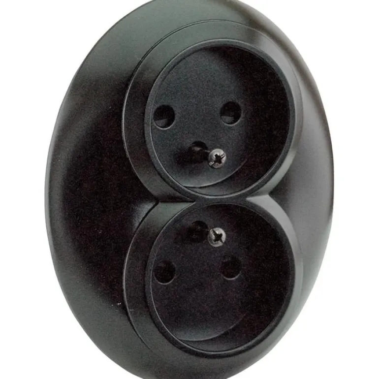 Maadoittamaton 2-osainen pistorasia upotettavaksi kojerasiaan. Varustettu kynsillä, mikä tarkoittaa, että se sopii myös vanhempiin kojerasioihin, joissa ei ole ruuvirengasta.