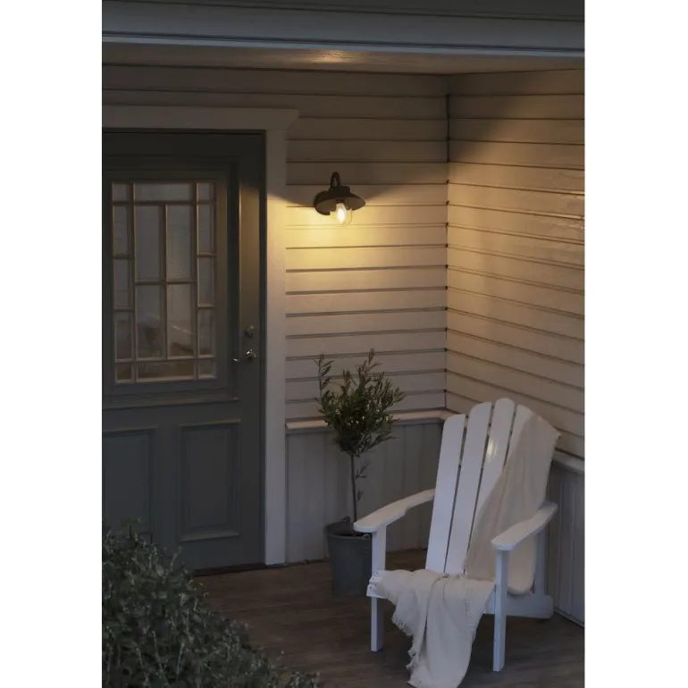 Konstsmide Vega seinävalaisimen minimalli. Erittäin helppo sijoittaa ja klassinen muotoilu. Mustalakattu alumiini.