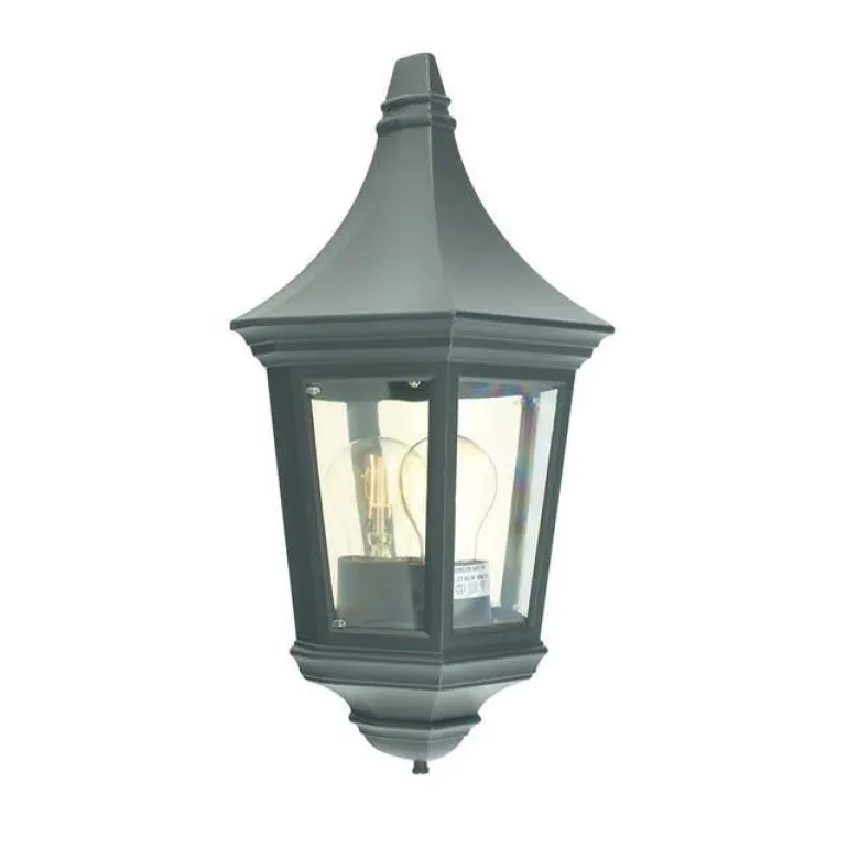 Klassinen seinävalaisin pulverimaalattua valettua alumiinia. Polykarbonaattilasi.