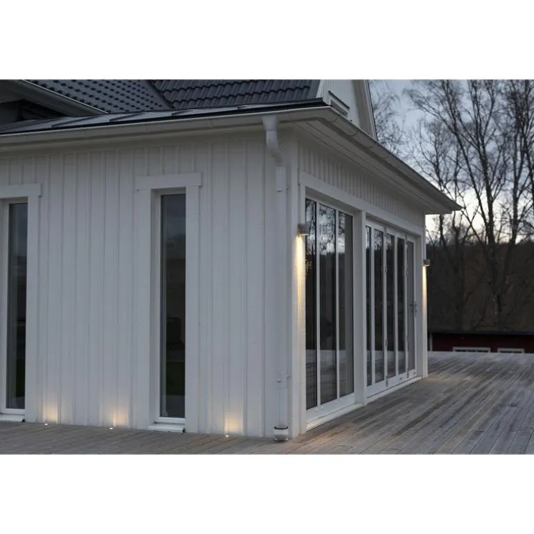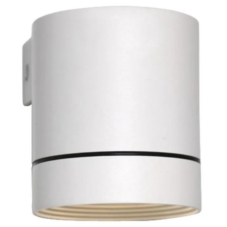 Seinävalaisin GU10-pistokkeella 230V valonlähteelle, alaspäin suunnattu valo. Valaisin on IP54-luokiteltu.
