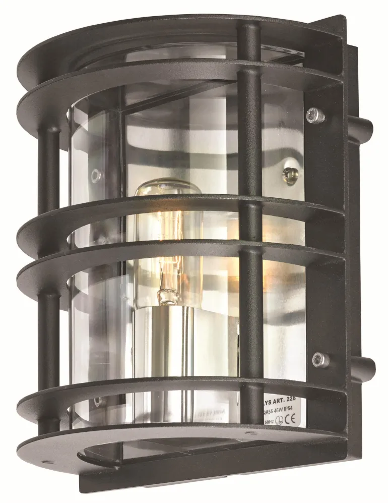 Seinävalaisin E27-kannalla, valmistettu teräksestä. Valaisin on IP54-luokiteltu.