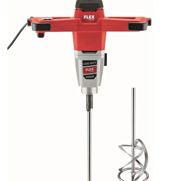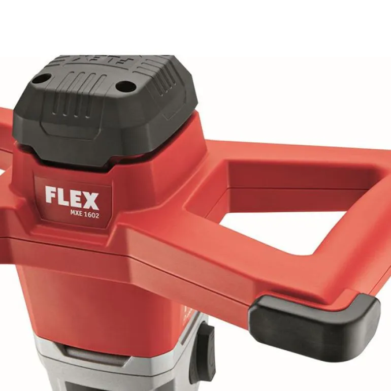 FLEX MXE 1602 -sekoituskoneessa on kestävä 2-vaihteinen vaihteisto, materiaalin mukainen kierrosluku, suuri vääntömomentti ja pitkä käyttöikä. Ylikuumenemissuoja, ylikuormitussuoja ja portaaton vipukytkin, jolla nopeutta voi säätää enimmäiskierroslukuun asti. Suuri vääntömomentti kaikilla kierroslukualueilla ja miellyttävä kolmen kierrosalueen käyttökytkin, johon yltää otealueelta työtä keskeyttämättä. Käynnistyskytkimen kumisuoja estää likaa pääsemästä kytkimeen ja nopeusasetus tarjoaa optimaalisen sekoitusnopeuden.