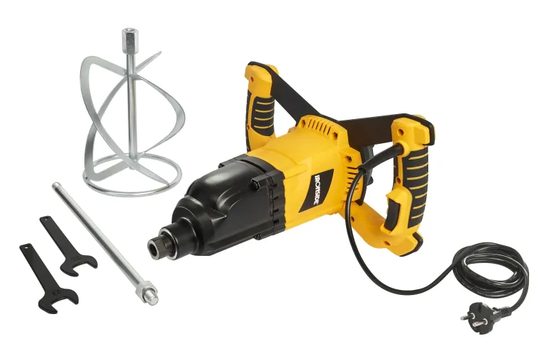 Vankka ja väljästi mitoitettu vaihdelaatikko tuottaa suuren vääntömomentin ja on pitkäikäinen. Pehmeä käynnistys. Lämpötilan valvonta, ylikuormitussuojaus ja nopeuden säätö portaattomalla vipukytkimellä aina suurimpaan kierroslukuun saakka. Suuri vääntövoima kaikilla kierroslukualueilla. Kaksivaihekytkin on helposti saavutettavissa tarttuma-asennosta keskeyttämättä työtä, ja se on suojattu kumisuojuksella likaantumiselta. Lukittava virtapainike sekä sähkökatkossuojaus. Sopii erinomaisesti sekoitusasemalla paikallaan tapahtuvaan käyttöön. Virtakatkaisimen päällä oleva joustava kumisuojus estää likaa pääsemästä sisään. Ehkäisee juuttuneesta katkaisimesta aiheutuvia häiriöitä. Ergonomisesti muotoiltu kädensija tuntuu miellyttävältä kädessä. Neljässä kulmassa kumisuojaus turvallisempaa säilytystä ja kuljetusta varten. Karan lukitus ja uudelleenkäynnistyssuojaus. Sekoitinvispilän vaihto yksinkertaista. Eri käyttöalueille, enintään 80 l/120 l. Sekoitukset: Soveltuu kaakelilaastille, ruiskutuslaastille, fillerille, liisterille, kipsille ja muurauslaastille. Vakiovarusteet: 1 sekoitinvispilä WR2 140 x 600 M14 ja avain SW 22.