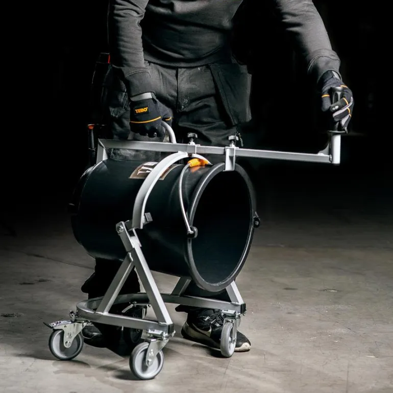 Kallistustoiminnolla varustettu sekoitusvaunu 30 litran purkeille. Tämä vaunu soveltuu erityisesti TEBOn 30 litran purkeille, Twist stop Heavy Duty. Sekoitinvaunu auttaa saamaan tehokkaan ja ergonomisen seoksen esimerkiksi tasoitemassasta
