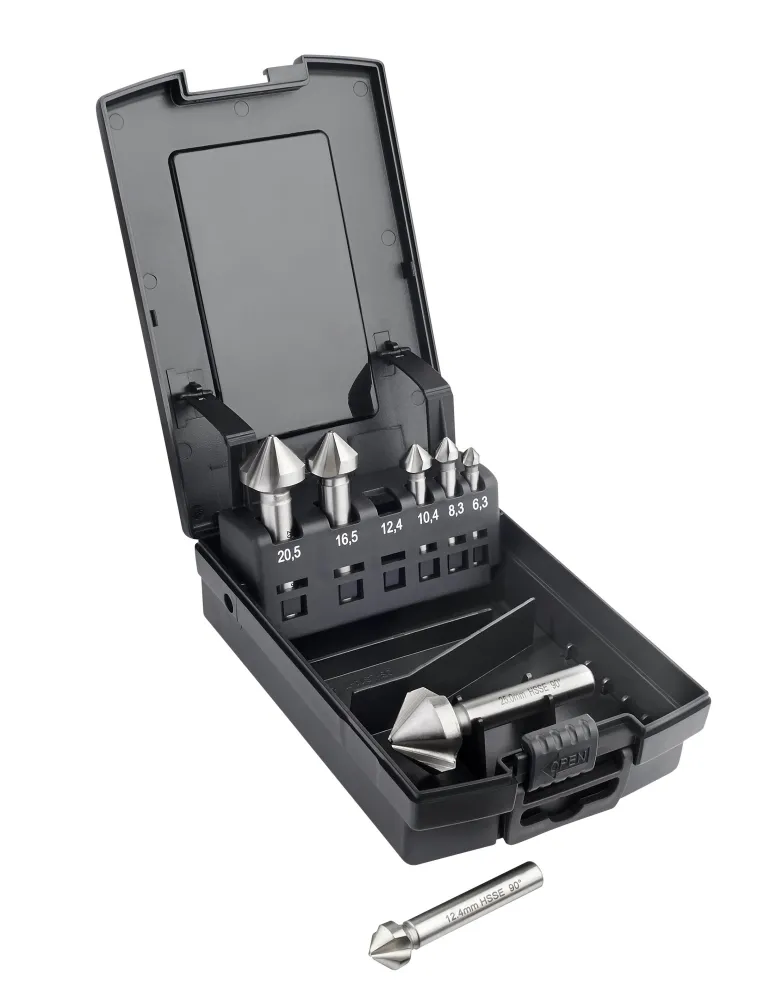 Kartiomaiset upotusporat sarjana, 90°. Koot: 6,3, 8,3, 10,4, 12,4, 16,5 ja 20,5 mm.