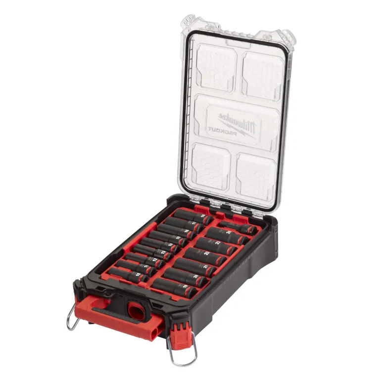 Milwaukee 4932480943 on SHOCKWAVE™ IMPACT DUTY -hylsysarja korkealaatuisesta seosteräksestä (kromi-molybdeeni), joka antaa erinomaisen lujuuden ja kestävyyden. Optimaalinen istuvuus kuuden otepisteen ansiosta. Liukumaton Hex-geometria estää hylsyn ja mutterien reunojen pyöristymisen ja syvät seinämärakenteet helpottavat vaikeimpienkin mutterien irrottamista. Valkoiset, musteella täytetyt kokomerkinnät ja lasermerkatut osanumerot helpottavat tunnistamista eivätkä kulu pois. Kaksoisreiän muotoilu ja ura parantavat hylsyjen käyttöturvallisuutta. Sisältö 16 x ½″ pitkät hylsyt: 10 / 11 / 12 / 13 / 14 / 15 / 16 / 17 / 18 / 19 / 20 / 21 / 22 / 23 / 24 / 75 mm pidennysosa + 1 x 4932464083 kompakti PACKOUT™-lokerikko.