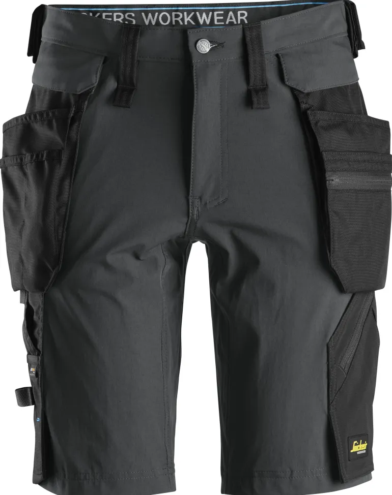 Joustavat shortsit vaativaan työhön kuumissa olosuhteissa. Valmistettu nopeasti kuivuvasta kankaasta, joka lisää mukavuutta. Joustopaneelit tarjoavat mukavuutta, kun taas irrotettava kotelotasku tarjoaa kätevyyttä, joustavuutta ja helpon pääsyn työkaluihin.
