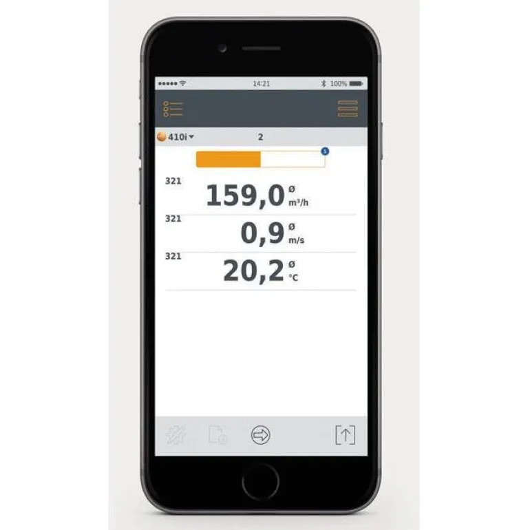 410i-siipipyöräanturin mittausalue on 0,4–30 m/s käytettäessä ”siipipyörä”-anturityyppiä ja ”NTC”-mittausalue on -20…+60 ”C. Anturi saa virtansa kolmesta AAA-paristosta, joiden käyttöikä on 200 tuntia. Käyttölämpötila-alue on -20…+50 °C. Toimitus sisältää paristot ja tehtaan kalibrointirapotin.