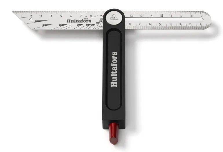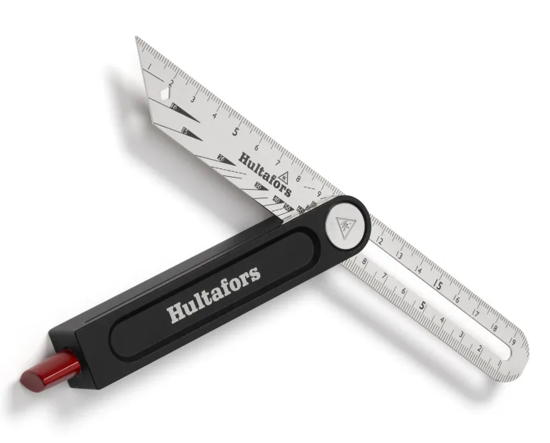 Siirtokulma useilla älykkäillä toiminnoilla. 20 cm:n terässä on kestävä laseretsattu millimetriasteikko ja kulmamerkinnät (0–90°) molemmilla puolilla. Terävässä päässä on merkintälovi, kun taas toisessa päässä on litistetty reuna, jotka molemmat on suunniteltu pituuden mittausten helppoon siirtämiseen veitsellä tai lyijykynällä. Litteässä reunassa on myös oma pituusasteikko syvyysmittauksia varten.