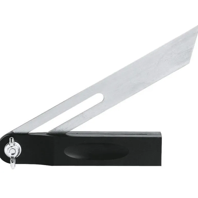 Kulmamitta muottivaletulla kahvalla, jossa on oteurat, sekä terän lukitusjärjestelmä. Mallissa on tukeva muovikahva ja siirrettävä nikkelipinnoitettu terästerä. Terä on karkaistua terästä, jossa on korkea hiilipitoisuus.