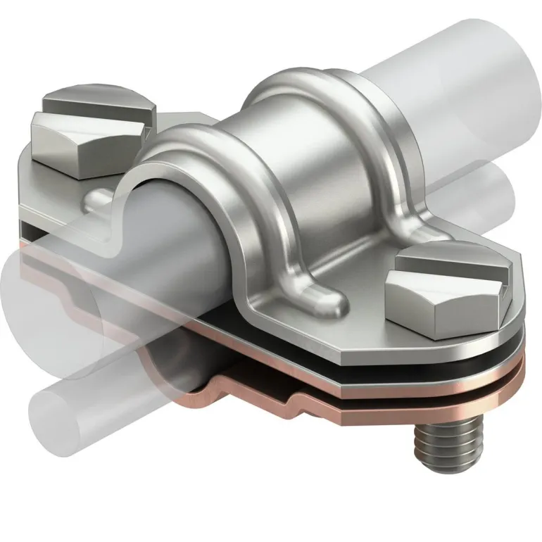 Kaksimetallinen yleisjakokappale. Enintään ø 16 mm:n johtimille, ruostumattomasta kupariin ø 8-10 mm. 2 kuusiokoloruuvia M8 x 20 ruostumatonta terästä (VA). Alumiininen/kuparinen välilevy