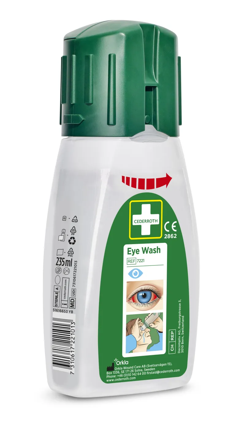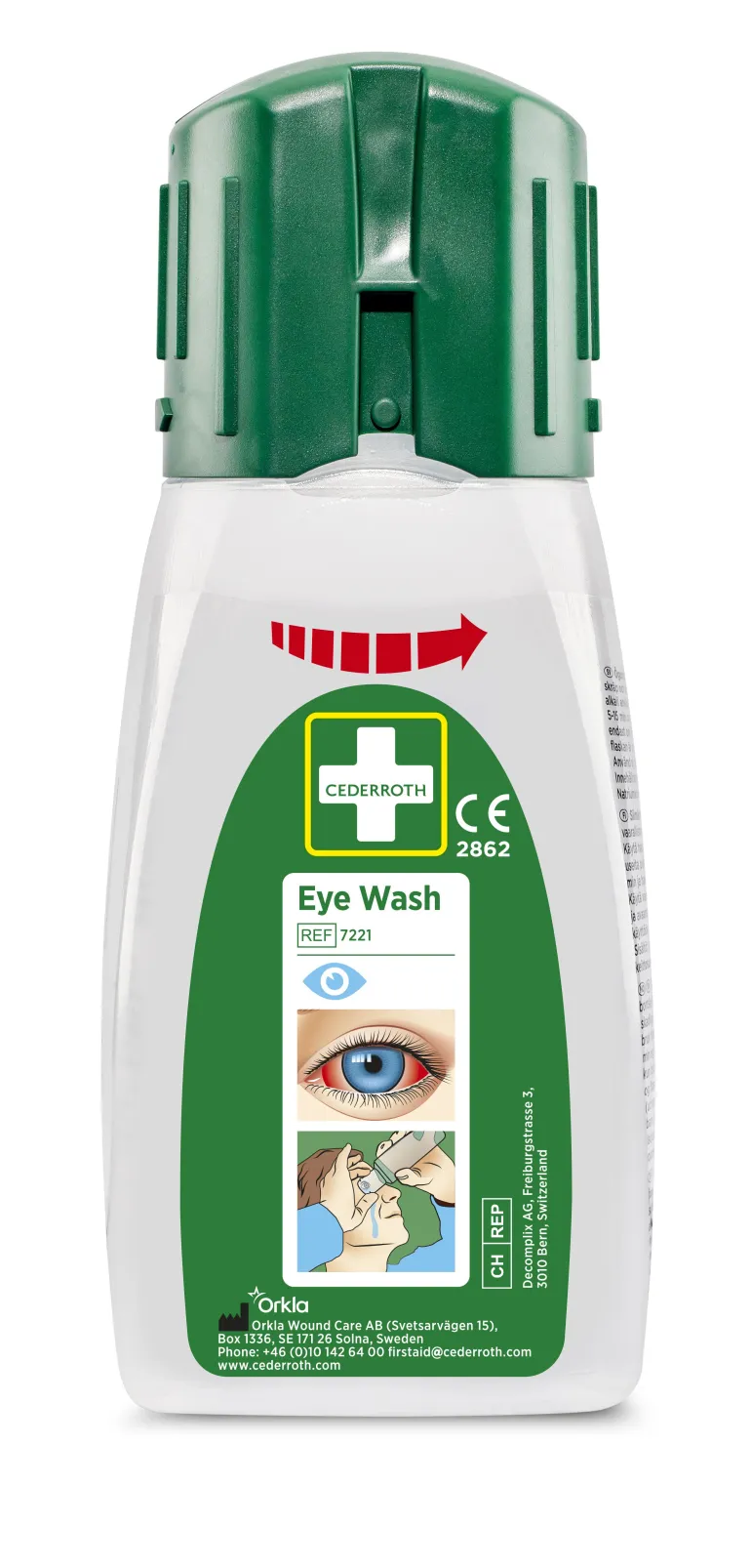 Silmäsuihkupullo 235 ml – mahtuu kätevästi taskuun tai koteloon. Näin huuhtelupullo on aina saatavilla onnettomuustilanteessa. Pieni helppokäyttöinen pullo, muotoiltu huuhtelukuppi ja runsas huuhteluneste. Helppo avata yhdellä kädenliikkeellä Pullo aukeaa helposti kääntämällä.
