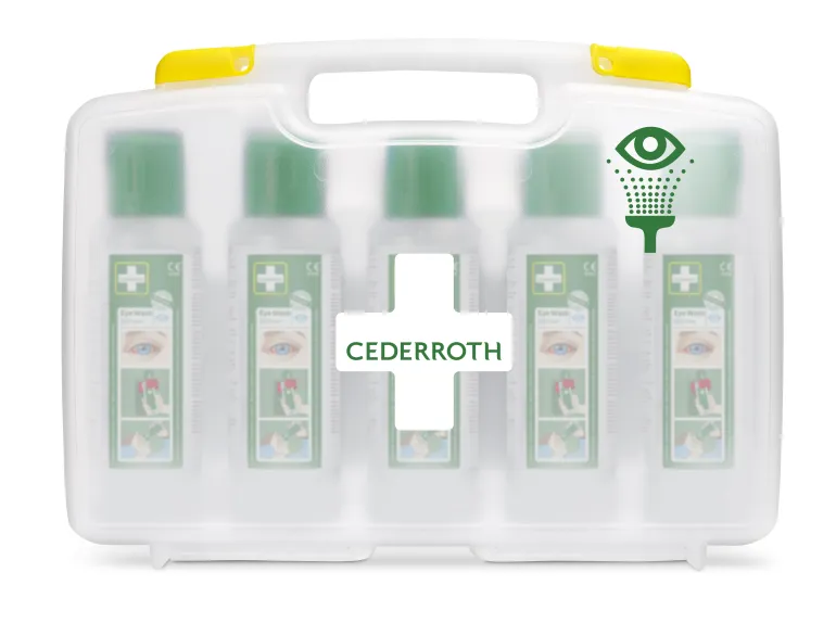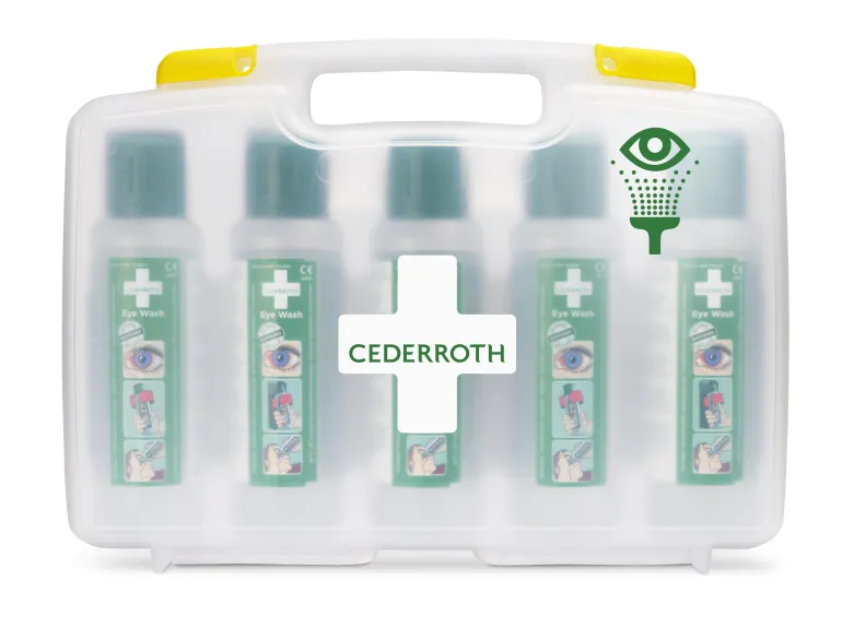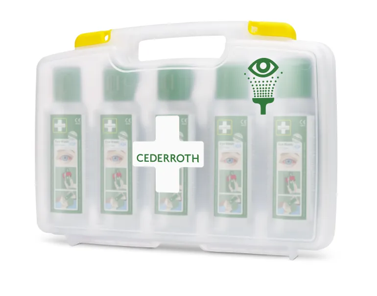 Cederroth 51011042 on silmähuuhde (5 x 500ml), joka toimitetaan säilytyslaukussa. Kätevä pidettäväksi mukana esimerkiksi liikkuvassa työssä tai sairaalaan kuljetettaessa. Tukeva, läpinäkyvä ja kova muovipakki kahvalla. Helppo avata keltaisilla soljilla, jotka liukuvat sivusuunnassa. Voidaan ripustaa seinälle seinäpidikkeellä (Cederroth 51011041).