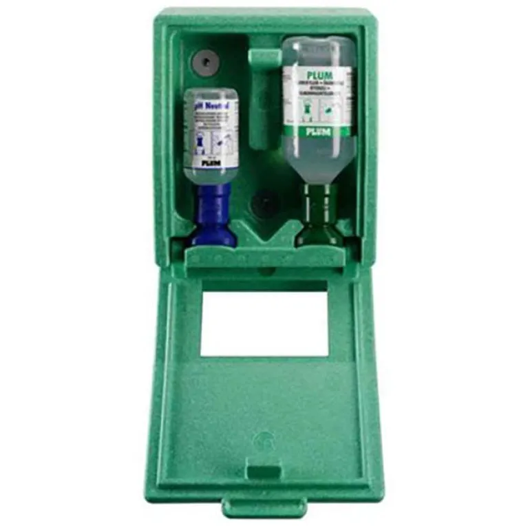Plum Combibox -silmänhuuhteluasemassa on suihku: natriumkloridi+ (500 ml) ja pH-neutraali (200 ml). Asema on valmistettu iskunkestävästä polystyreenistä ja soveltuu erityisesti alueille, joilla on kemiallisten ja mekaanisten vaurioiden riski. CombiBoxissa on käyttöohjeet etupuolella. Kannessa on sisäpeili.