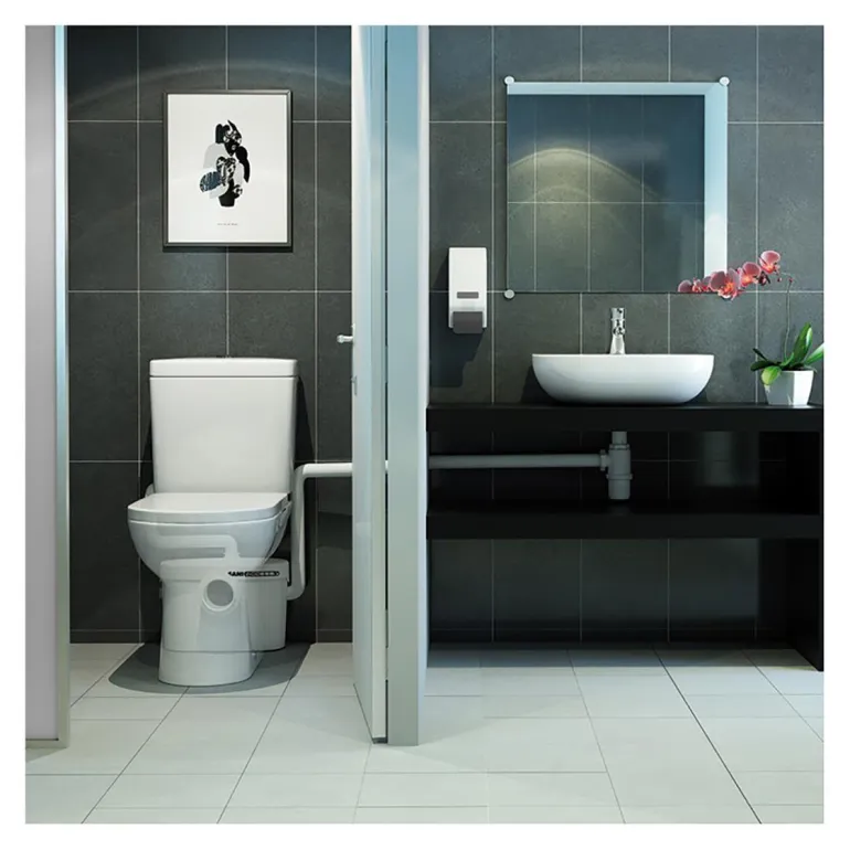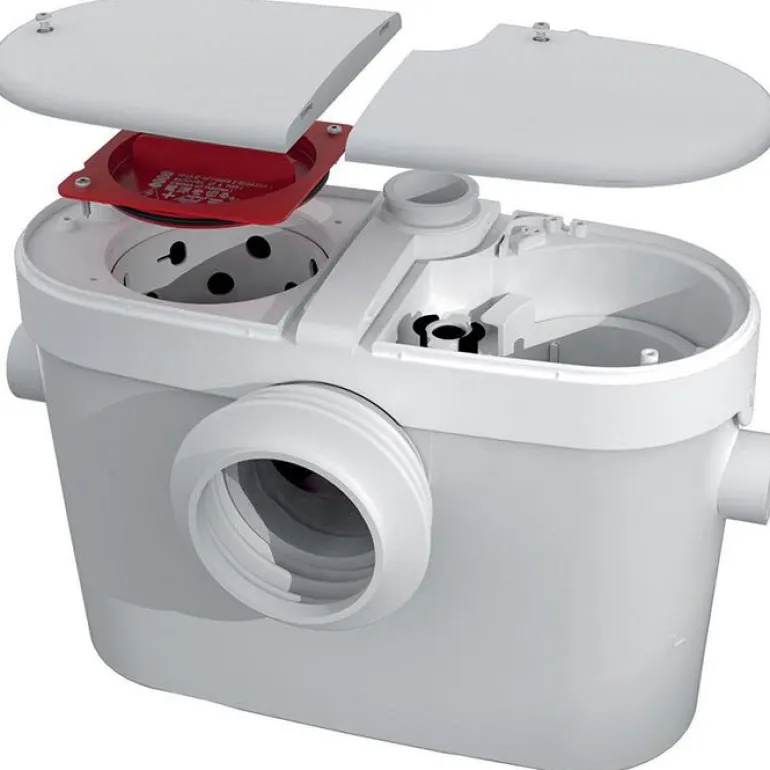 Silppuripumppu, joka pumppaa vettä WC:stä ja pesualtaasta. Pumppu on helppo asentaa, ja se sopii perinteisiin WC-istuimiin, joissa on P-lukko ja vähintään 6 l/huuhtelu.