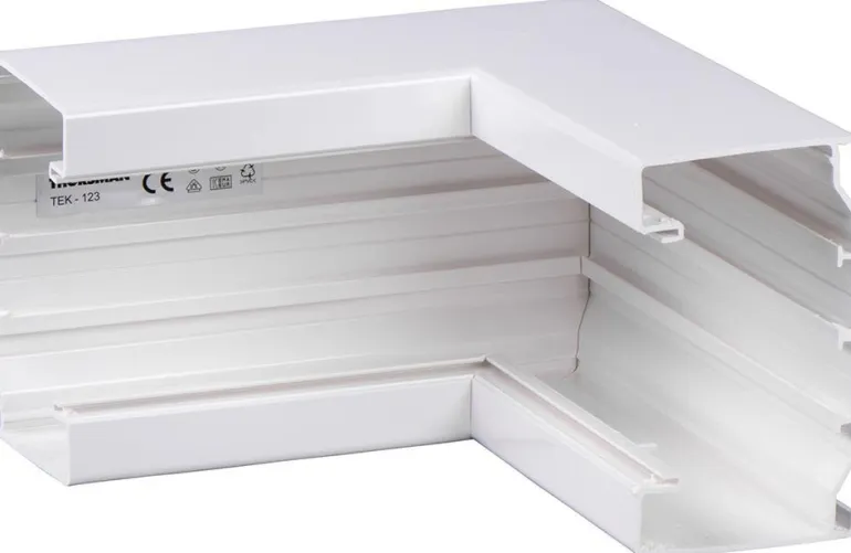Sisäkulma TEK-123:n 90 asteen kulmaukseen. Liitetään alaosaan kahdella erikseen tilattavalla liitoskappaleella.