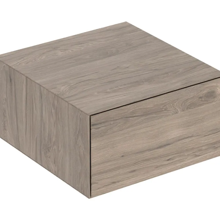 Sivukaappi yhdellä laatikolla. Push-to-open -mekanismilla ja hitaasti sulkeutuva laatikosto. Lujapuristetusta kolmikerroksisesta lastulevystä.