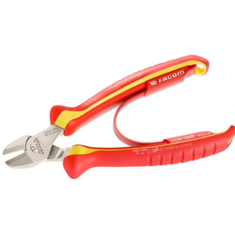 Facom 192A.16VE on 10 000 voltin teholla testatut sivuleikkurit pehmeiden lankojen ja modernien materiaalien leikkaamiseen. Valmistettu hiiliseosteräksestä, jossa on induktiokarkaistut leikkausreunat, ja ergonominen kahva, joka kestää kemikaaleja.