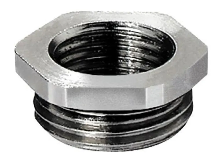 Sovitin – supistusmuhvit. Nikkelipinnoitettua messinkiä, isolla metrisellä ulkokierteellä ja pienellä metrisellä PG-sisäkierteellä.