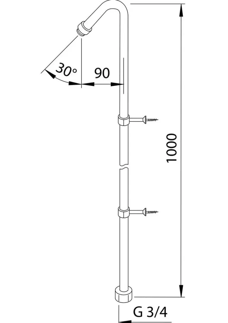 Oras 231031 suihkuputki 45°. Kromattu, 2 kiinnikkeellä.