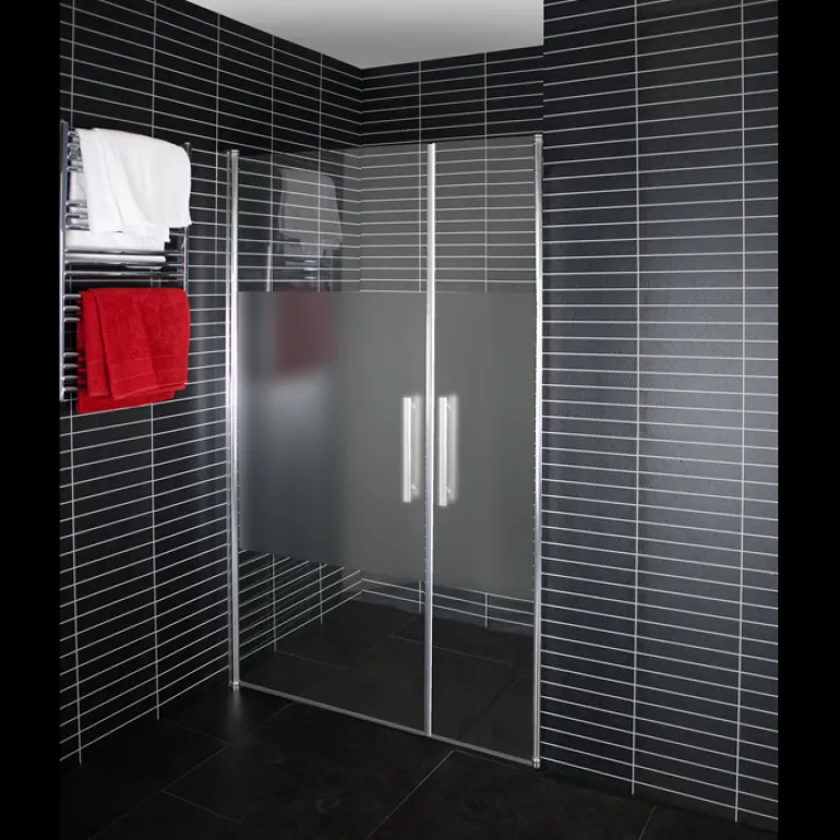 Osittain huurrettu kaksisuuntainen ovi, joka voidaan asentaa syvennykseen kahden seinän väliin, kulmaan. Ovi on turvalasia ja 6 mm paksu. Toimitukseen sisältyy hopeanvärinen kiiltävä seinäprofiili. Varustettu säädettävällä nostosaranalla ja suljetaan magneettilistalla.