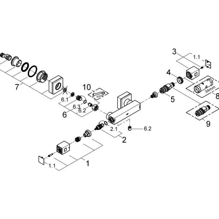 GROHE EasyLogic ‑asteikkorenkaassa merkinnät ovat hanakotelossa eivätkä kahvoissa, joten veden lämpötilan ja virtausvoimakkuuden valinta tuntuu helpolta ja luonnolliselta. GROHE SafeStop -painike suojaa sekä lapsia että vanhuksia palovammoilta, kun taas GROHE EcoButton -painike auttaa säästämään vettä. Kiiltävä kromattu GROHE StarLight -pinnoite pitää osat raikkaan näköisinä useiden vuosien ajan. Pyyhkiminen kuivalla liinalla riittää pitämään ne tahrattomina.
