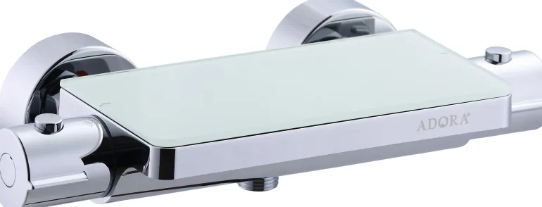 Termostaattisekoitin, jossa on suihkuliitäntä, ½”, sekoittimen alapuolella. Energiansäästötoiminto, kuumavesieste ja palamissuoja. VA-hyväksytty. Ainutlaatuinen muotoilu, laskutaso valkoista lasia. Suodatintiivisteet ja ylimääräiset kumitiivisteet.