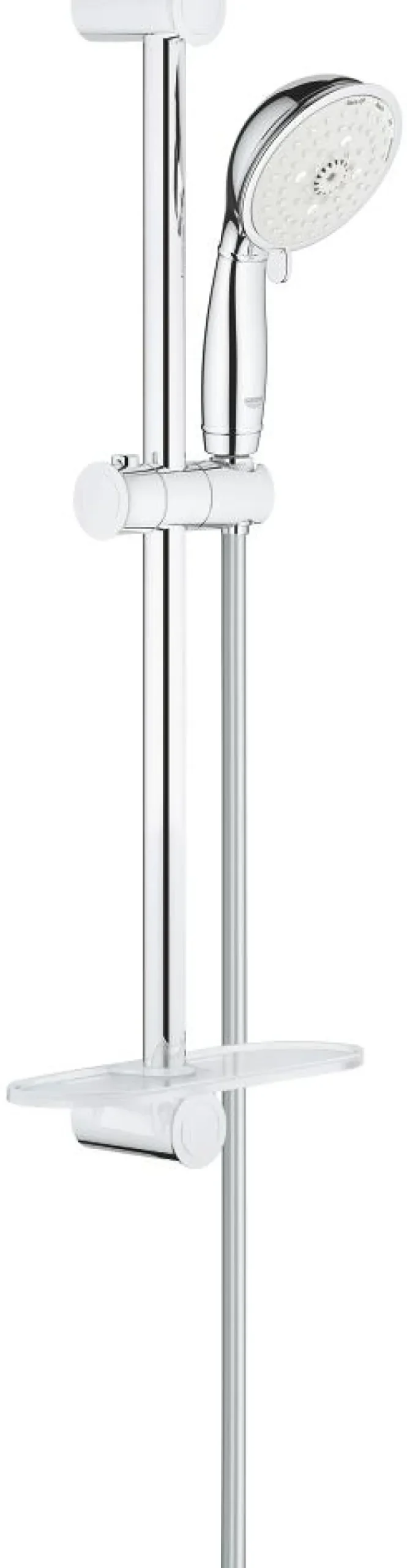 Suihkusarja käsisuihkulla, jossa on 4 erilaista suihkutustapaa. Sarjassa on käsisuihku, suihkutanko, Relexaflex-letku ja GROHE EasyReach -hylly. Ominaisuuksia kuten GROHE EcoJoy 9,5 l/min virtauksen rajoitin, GROHE DreamSpray ja GROHE StarLight -kromipinta..