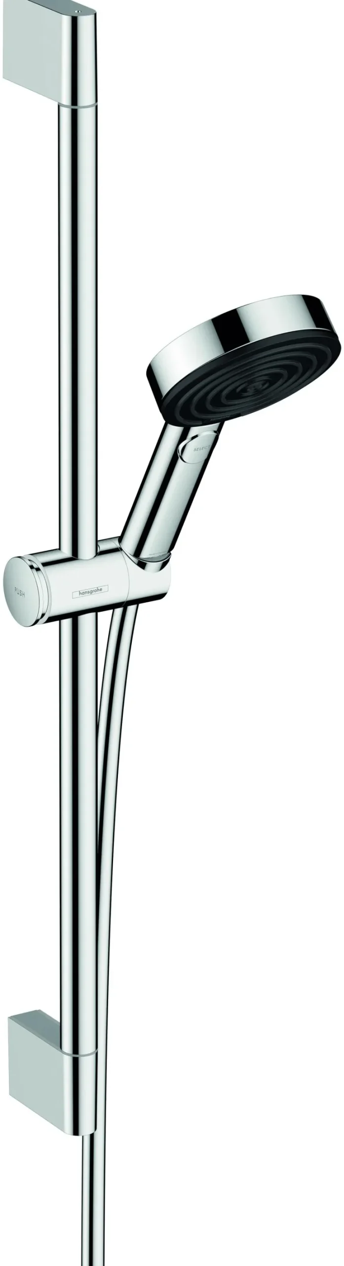 Hansgrohe Pulsify Select S 105 on kromattu suihkusetti, joka sisältää käsisuihkun kolmella suihkutyypillä, suihkutangon Ø22×650 mm, liukusäätimen ja suihkuletkun (jossa on kartiomutteri molemmissa päissä). Kätevä suihkumuodon valinta Select-painikkeella. Käsisuihkuteline on myös korkeussäädettävissä Select-painikkeella. Kääntyvä liitin estää letkun kiertymisen.