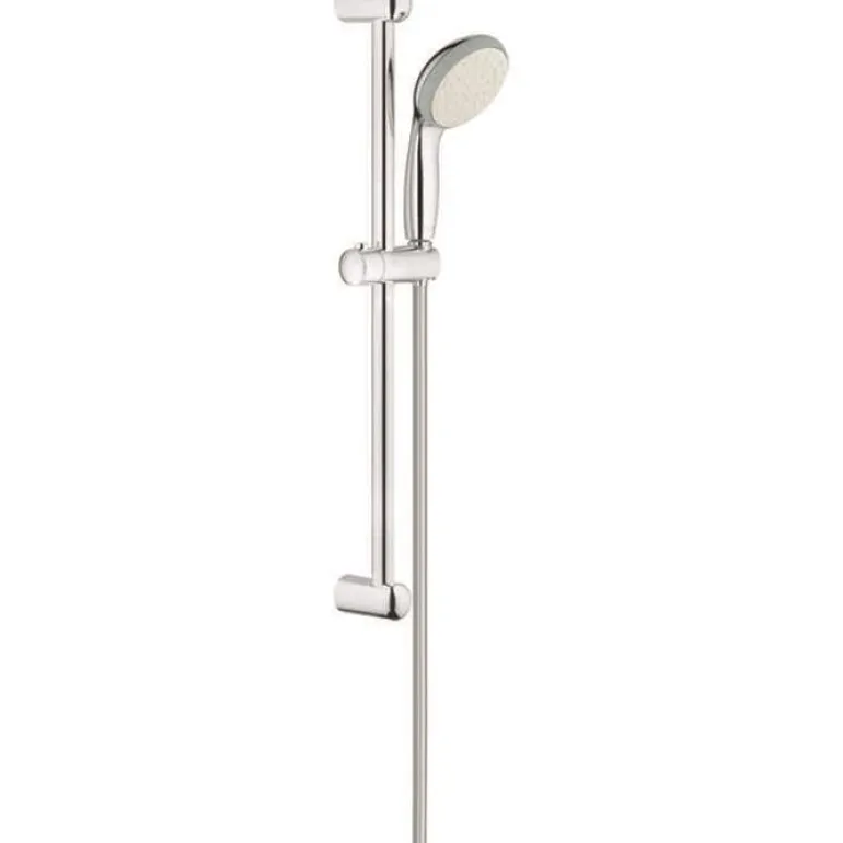 Grohe Vitalio Go 100 -suihkusarja, halkaisija 100 mm, ja suihkutanko, jonka kiinteä mitta on c/c 635 mm. Letkun pituus on 1,75 m, ja siinä on kiertymätön Antitwist-toiminto.