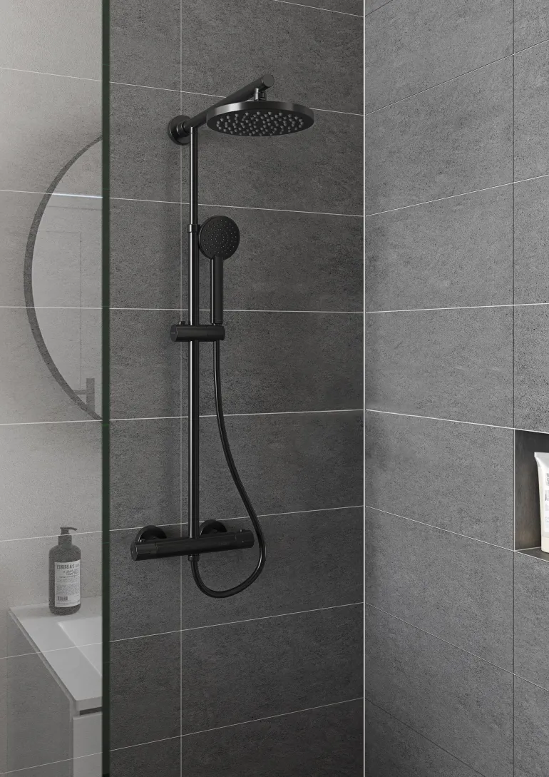 Täydellinen ja tyylikäs suihkusetti, joka sisältää suuren kattosuihkun Ø200 mm, yhden suihkutyypin käsisuihkun ja termostaattisekoittimen (150 c/c). Sisäänrakennetun vaihtimen, kalkinpoistojärjestelmän ja eco-pysäytystoiminnon ansiosta vedenkulutus pysyy alhaisena.