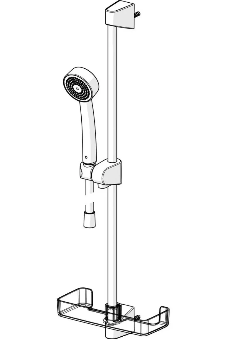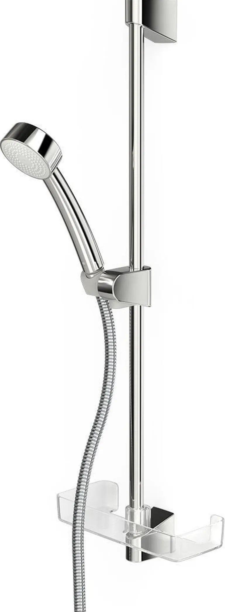 Oras Apollo -suihkusetti kromi/harmaa, jossa on käsisuihku, suihkutanko, suihkuletku ja saippua-astia.