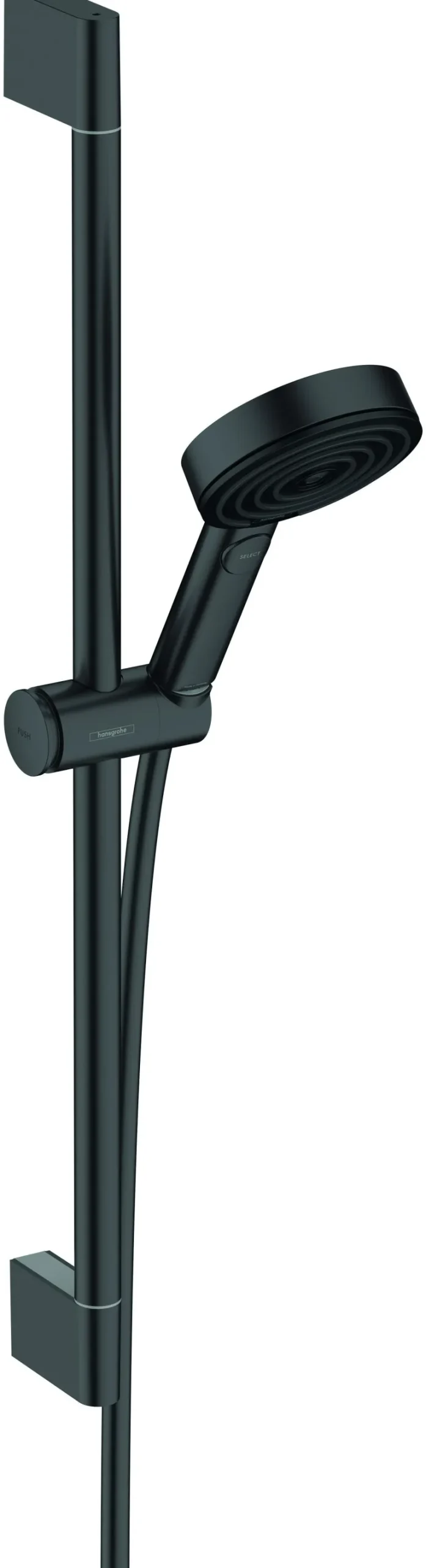Pulsify Select S EcoSmart -suihkusetti, joka sisältää 105 mm käsisuihkun, suihkuletkun ja -tangon (650 mm tanko). Kolme suihkutyyppiä: PowderRain, IntenseRain, Massage.