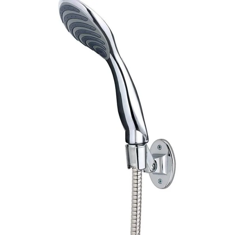 Kalkinpoisto-ominaisuudella varustettu krominen suihkusarja. Suihkusarja sisältää käsisuihkun, seinäkiinnikkeen ja letkun.