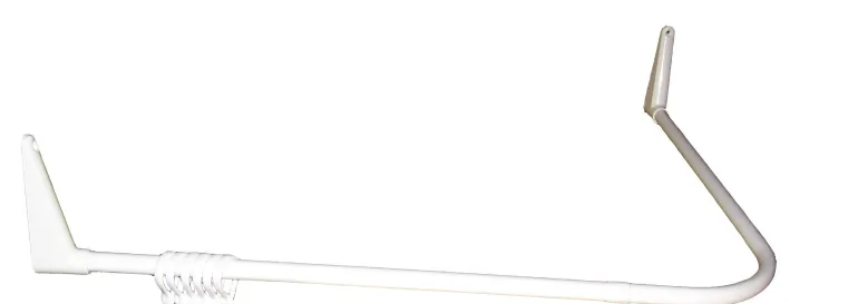 Nailonista valmistetut konsolit. Muovipinnoitetut teräsputket. Ilman kattotukia. Mukana kaksitoista suihkuverhorengasta. Malli 118 kylpyammeille, 119 suihkukulmaan tai suihkualtaaseen 90×90 cm.