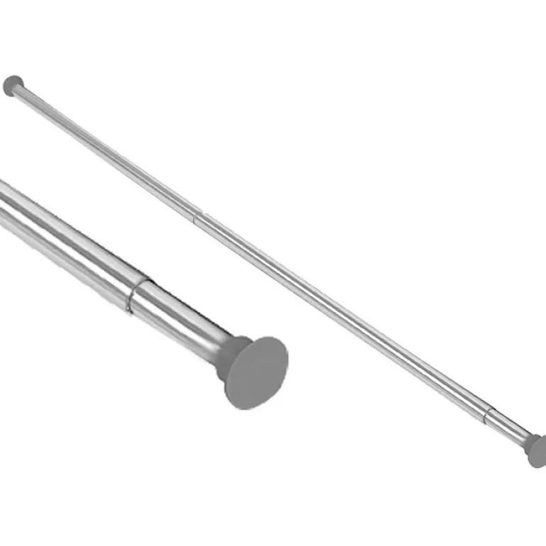 Laajennettava hopeanvärinen suihkuverhotanko harmaalla päätynupilla. Tankoa voidaan säätää välillä 75–220 cm, ja sen putken ulkohalkaisija (Ø) on 22 mm.