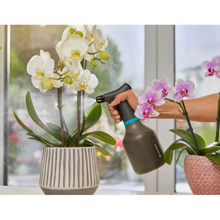 GARDENA 0,75 l sumutinpullo mahdollistaa kukkien ja kasvien sumukastelun kodissa ja puutarhassa. Se tekee vaikutuksen 360-asteen toimintolla, joka varmistaa, että pumppuosaan ei imeydy ilmaa. Kestävä, korkealaatuinen messinkisuutin takaa, että vesisuihku on aina mahdollisimman tehokas. Suutinta on helppo ja kätevä säätää joko suihkuksi tai sumuksi toiveidesi mukaan. Vesimäärä näkyy helposti läpikuultavasta pullosta.
