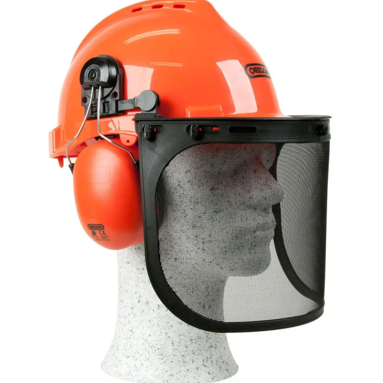Mukava suojakypärä, joka sisältää kuulonsuojaimet ja niskasuojan.