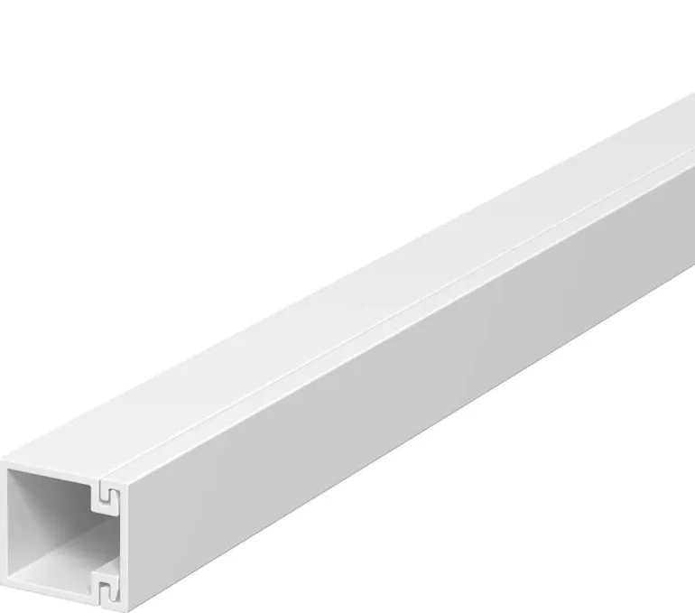 Lyijytön asennuskanava voima- ja heikkovirta-asennuksiin sekä tele-/data-asennuksiin. Alareikä nopeaa asennusta varten.