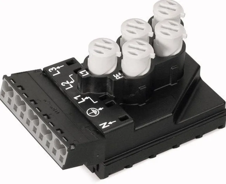 5-napainen syöttöliitin vedonpoistolla.