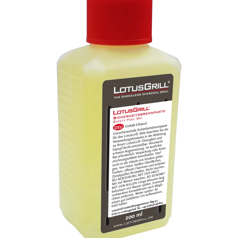 200 ml etanolista valmistettua sytytysgeeliä LotusGrillin sytyttämiseen. Annostele sopiva määrä sytytyslevylle. Säilytetään viileässä ja pimeässä.
